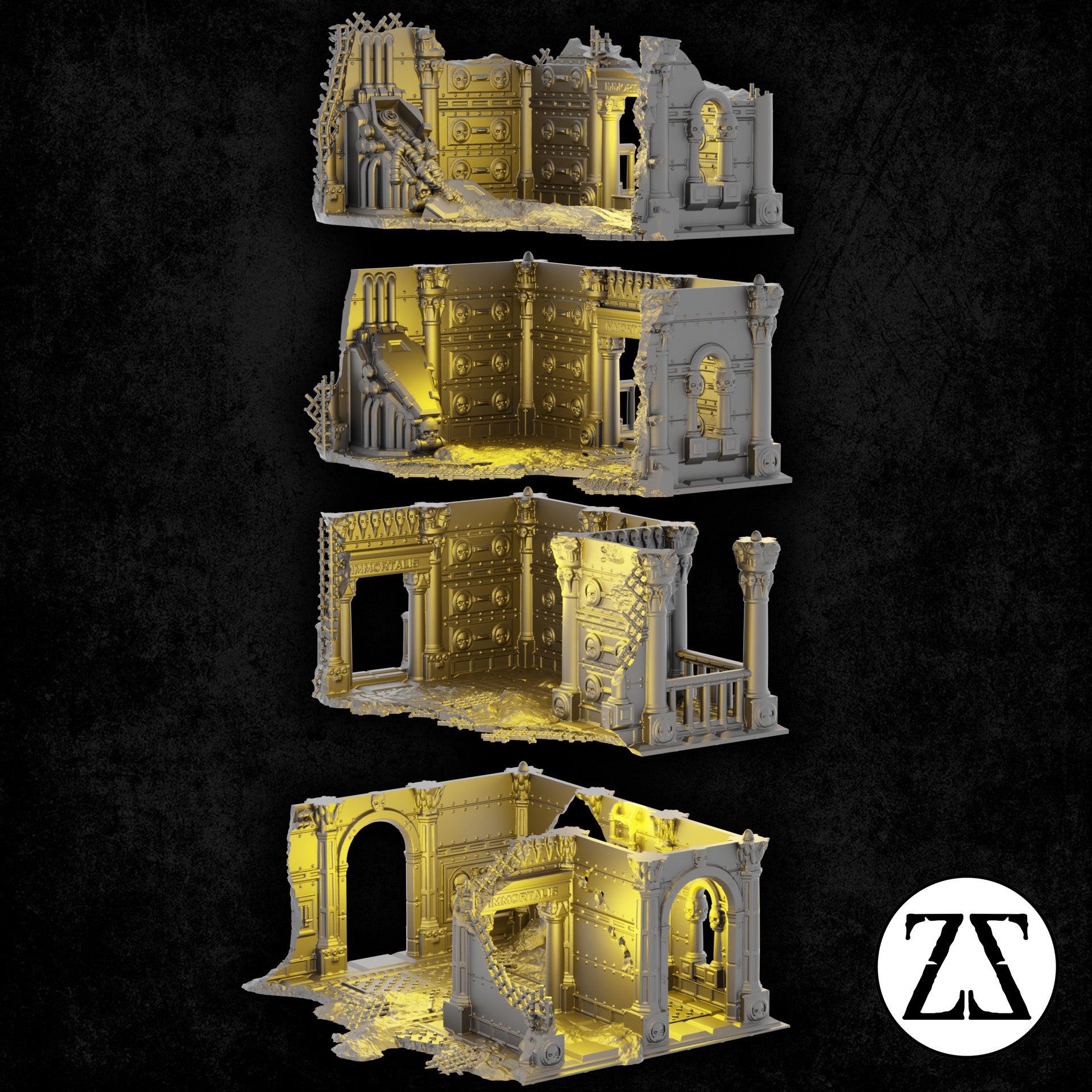 Conçu pour s’intégrer naturellement à la gamme Zorpsector: Rome, ce module en ruine permet de créer des zones de combat intenses, tout en conservant une excellente lisibilité en jeu. Il est idéal pour représenter un quartier en fin de conflit ou une cité impériale ravagée par la guerre.