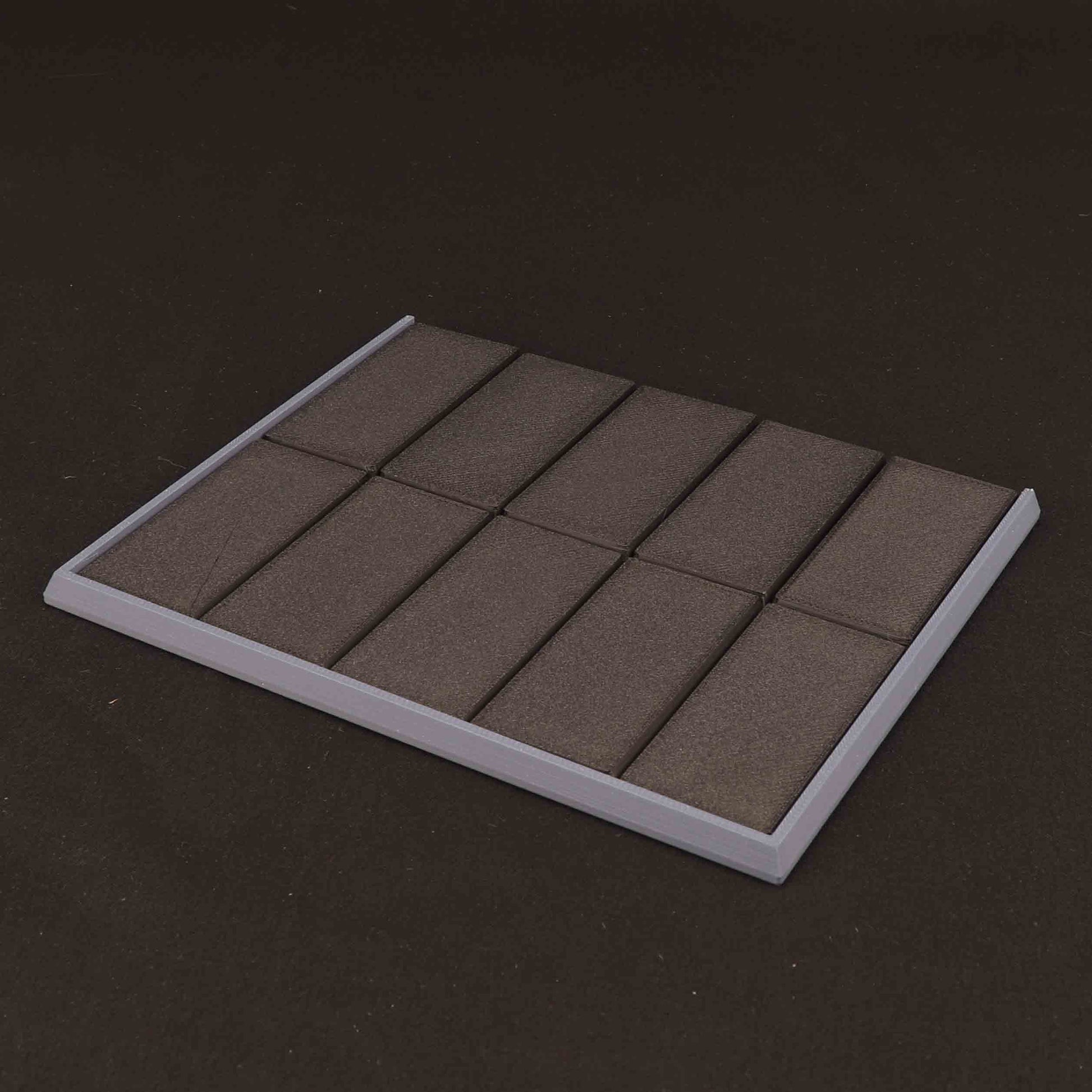 - Capacité : 10 figurines – socles 30×60 mm (2 rangs de 5 figurines)
