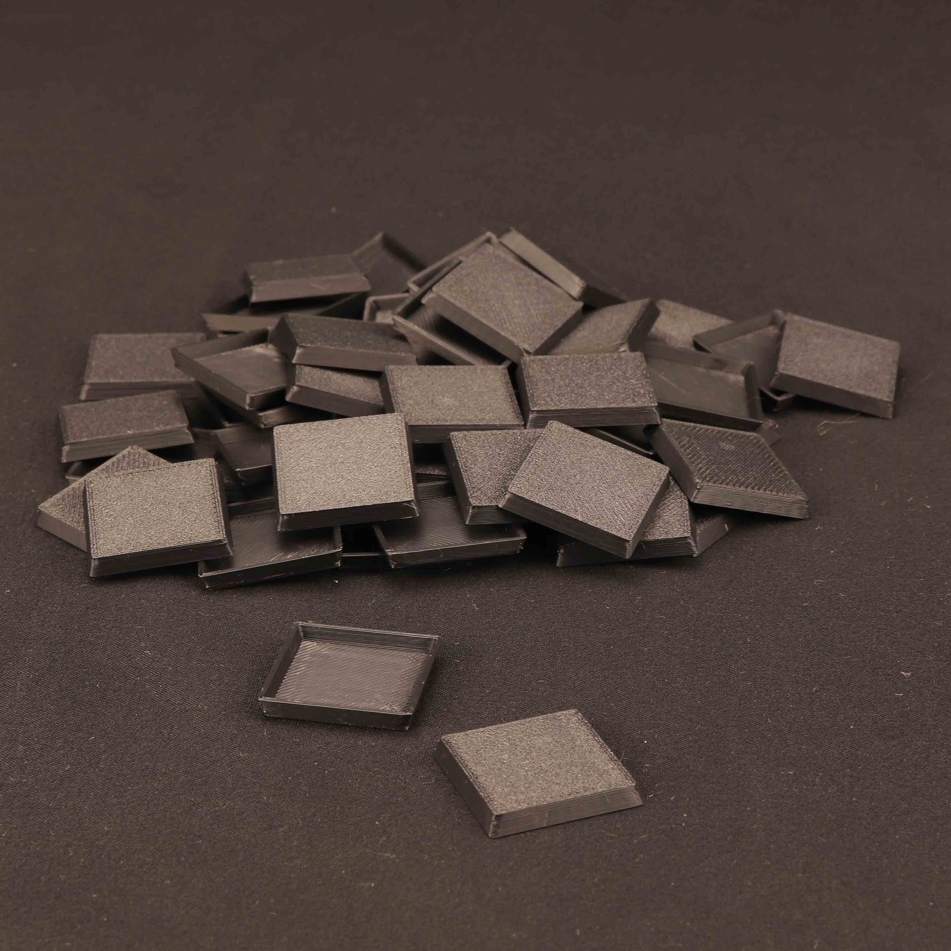 Socles carrés de 25 mm, imprimés en 3D PLA haute résistance, conçus pour vos armées de Warhammer The Old World et autres jeux de régiments.
